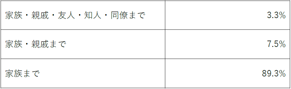 まず参列者では「家族だけ」の葬儀を望む人が圧倒的(89.3%)に多くなりました。
