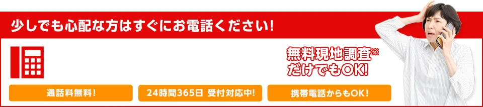 ※対応エリア・加盟店・現場状況により、事前にお客様にご確認したうえで調査・見積もりに費用をいただく場合がございます。
