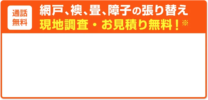 張り替え110番では24時間365日畳・ふすま・障子等の張替えや畳替えの料金などの様々なご相談を無料で承っております。お見積りのご依頼だけでなく、畳替えやその他網戸や障子の張替えに関する相談事、質問などございましたらお気軽にお電話ください。