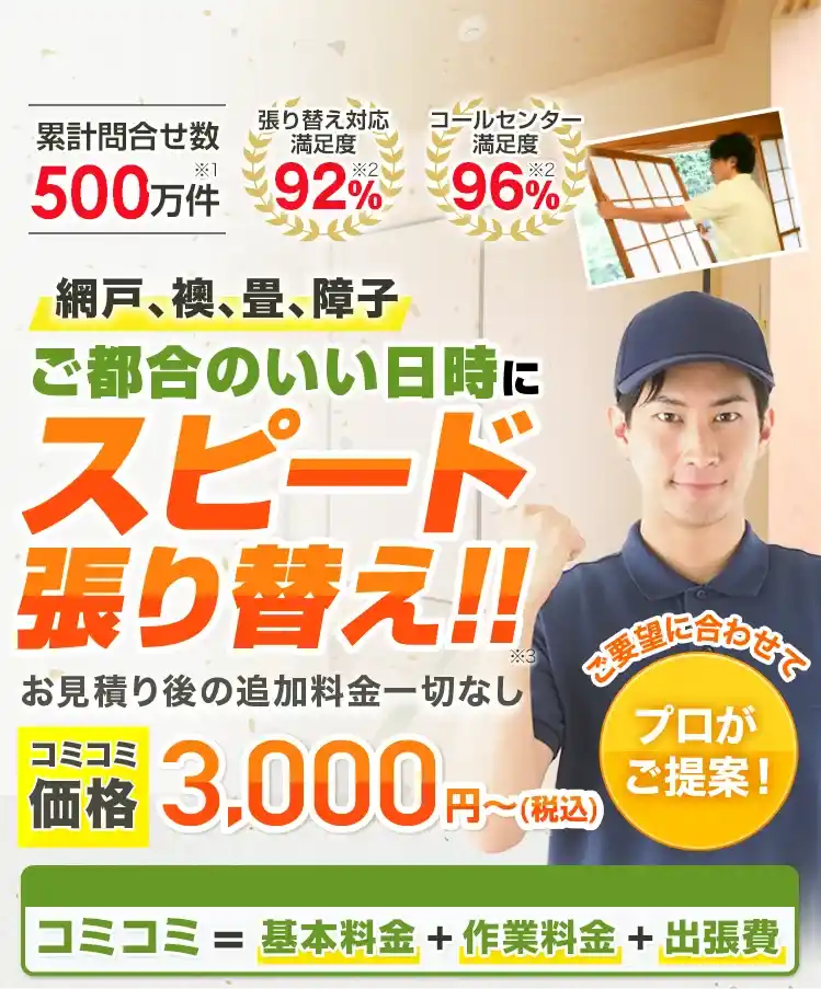 網戸、襖、畳、障子の張り替えは、張り替え110番までお気軽にご相談ください。