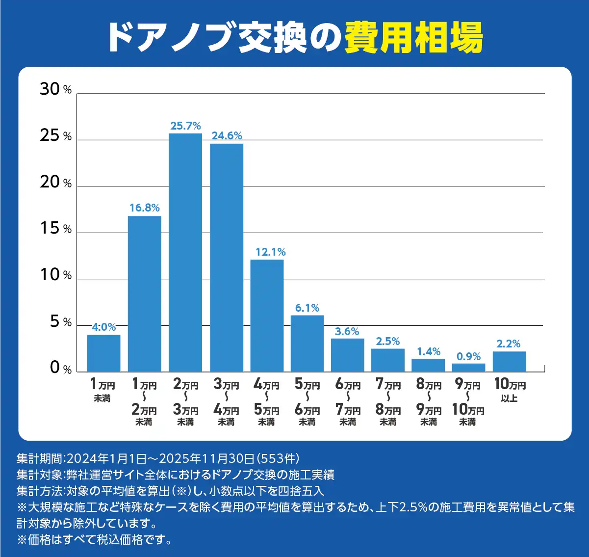 集計対象:弊社運営サイト全体におけるドアノブ交換の施工実績