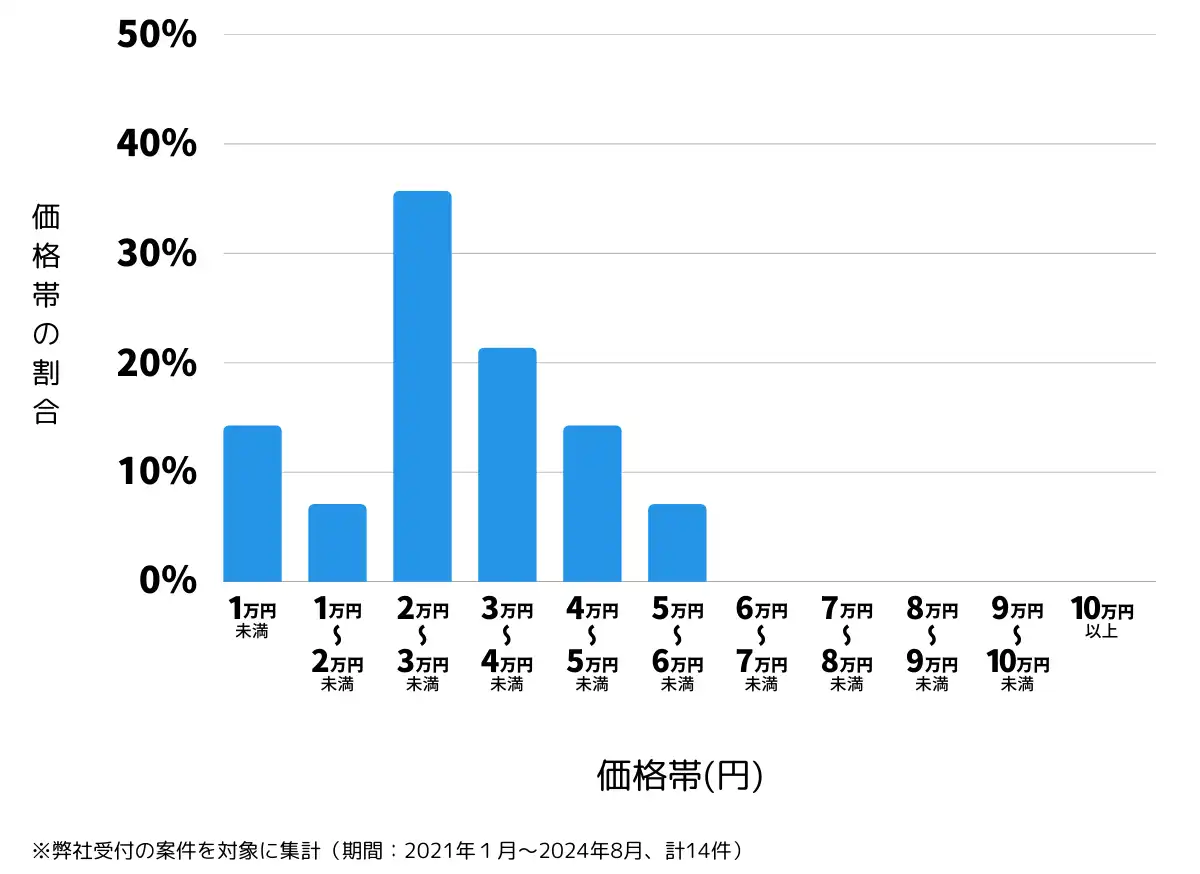 その結果、2万円〜3万円未満の価格帯がもっとも多いことがわかりました。