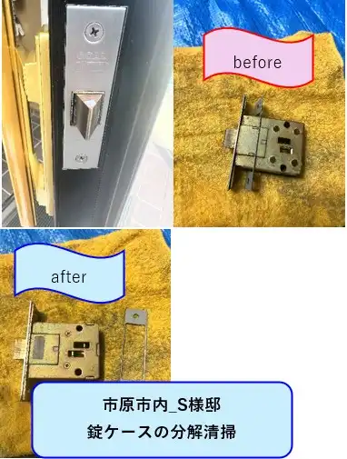 下の画像はKey Support Kazooがおこなった錠ケースの分解洗浄の写真です。
