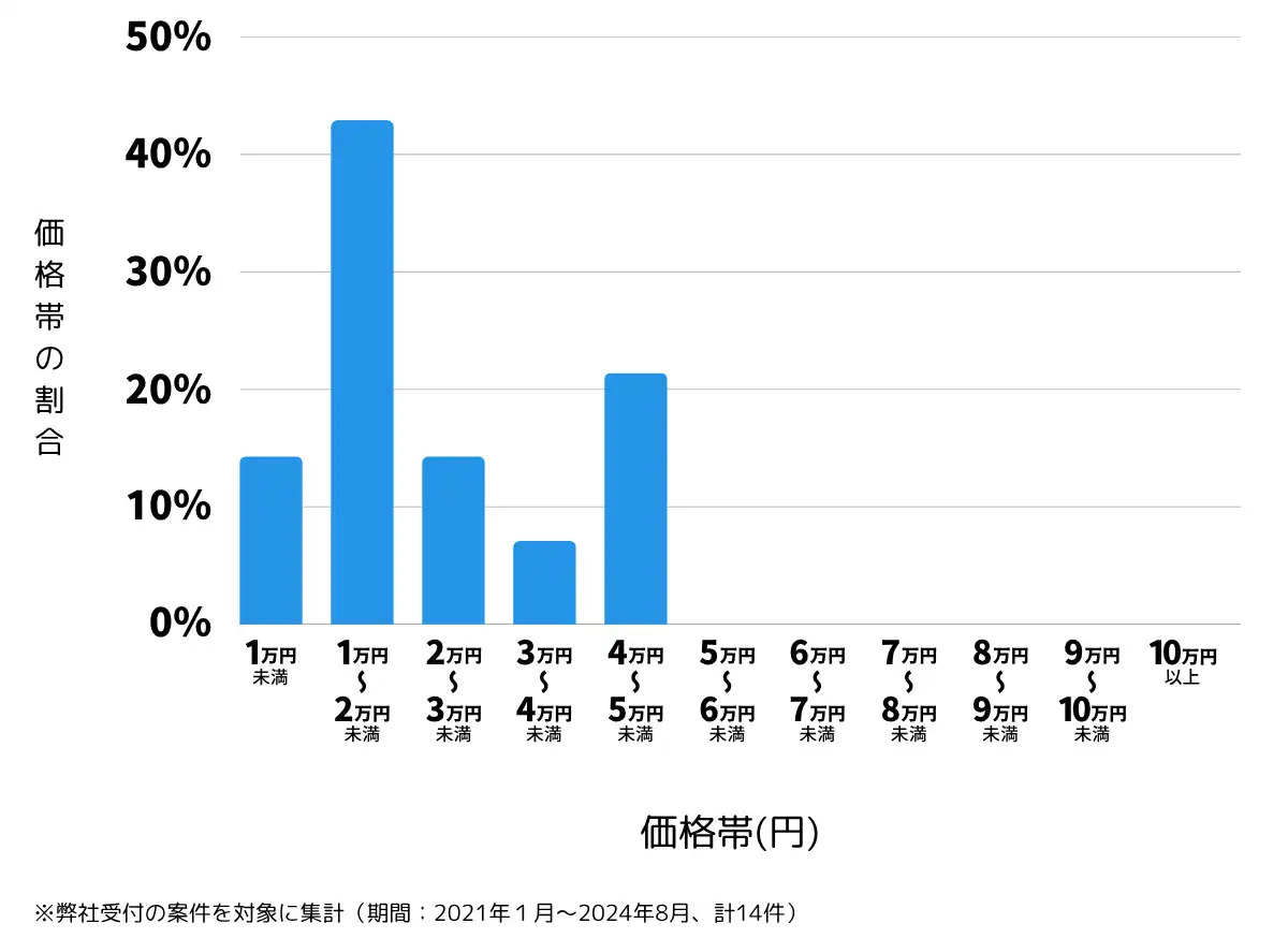 ただ2万円以上かかったケースも意外と多く、4万円~5万円未満の費用帯は2割を超えています。