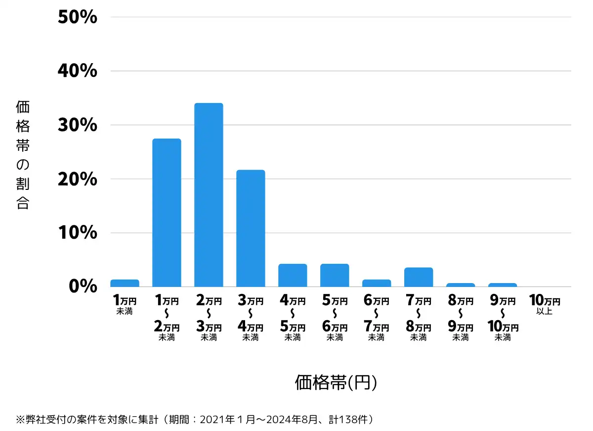 こちらのグラフを見ると、2万円~3万円未満が34.1%で最多となっています。