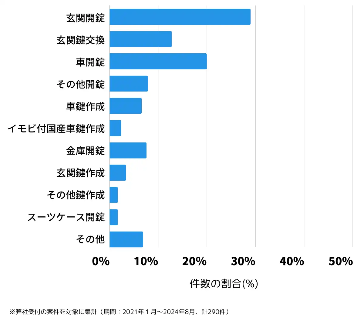 体感で、今まで遭遇した事例で「鍵屋じゃないと対応できない」と感じた事例は全体の何割ぐらいですか?