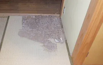 空き家で長く置いたままにしていた家具をどかしたら、タタミにシロアリ被害の跡がありました。