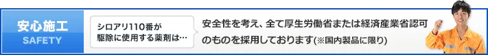 シロアリ駆除の悪徳業者がいると聞きましたが、シロアリ110番は大丈夫ですか?